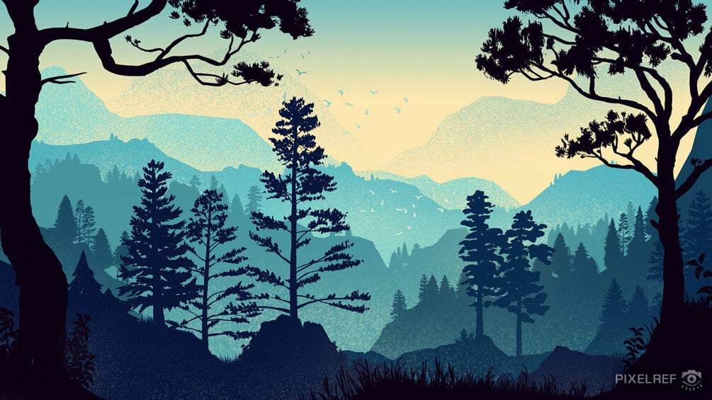 The level of detail of the silhouette is intermediate so it’s easily suitable to be integrated in the foreground, middleground or background of your composition. As well, the design of the trees can fit seamlessly with realistic or more stylised design.