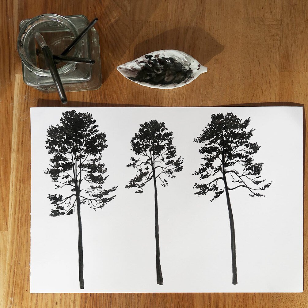 The silhouettes are the perfect basis to create very easily and quickly a graceful vegetal setting or stylish forest. You can see an example of a speed artwork made with a selection of these conifers.